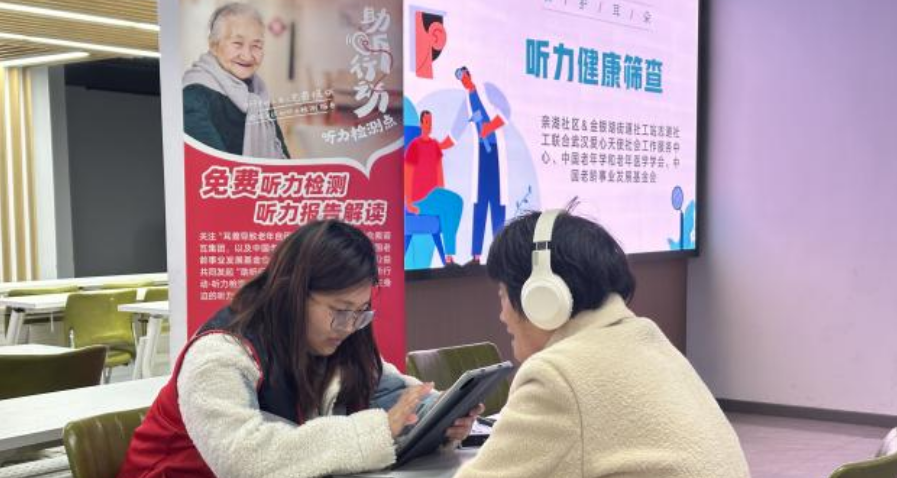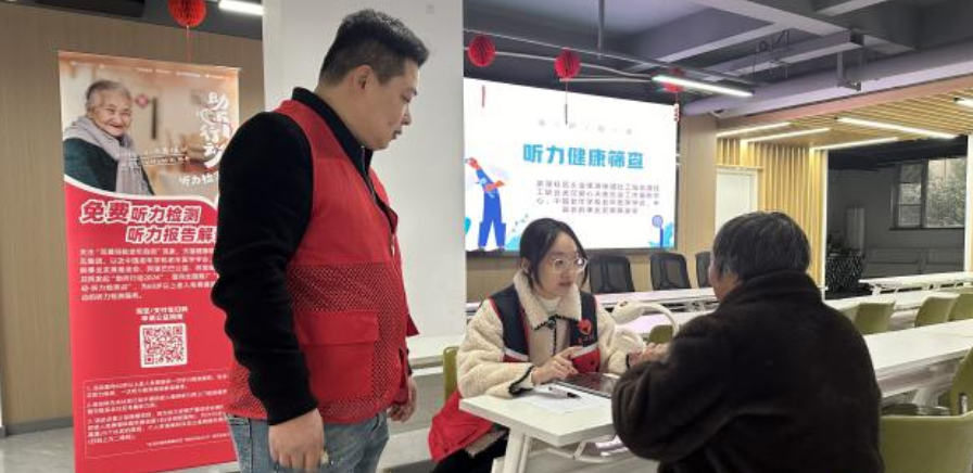 老年听力衰退问题随着人口老龄化加剧日益突出,老年听力损失不仅会导致沟通交流障碍,影响老年人的生活质量和社会参与,还会增加心理疾病和阿尔茨海默病的患病风险。全国爱耳日来临之际,金银湖街社工站志道社工携手武汉爱心天使社会工作服务中心,链接中国老年学和老年医学学会、中国老龄事业发展基金会发起的助听行动公益资源,于2月20日下午走进亲湖社区开展听力健康筛查行动。