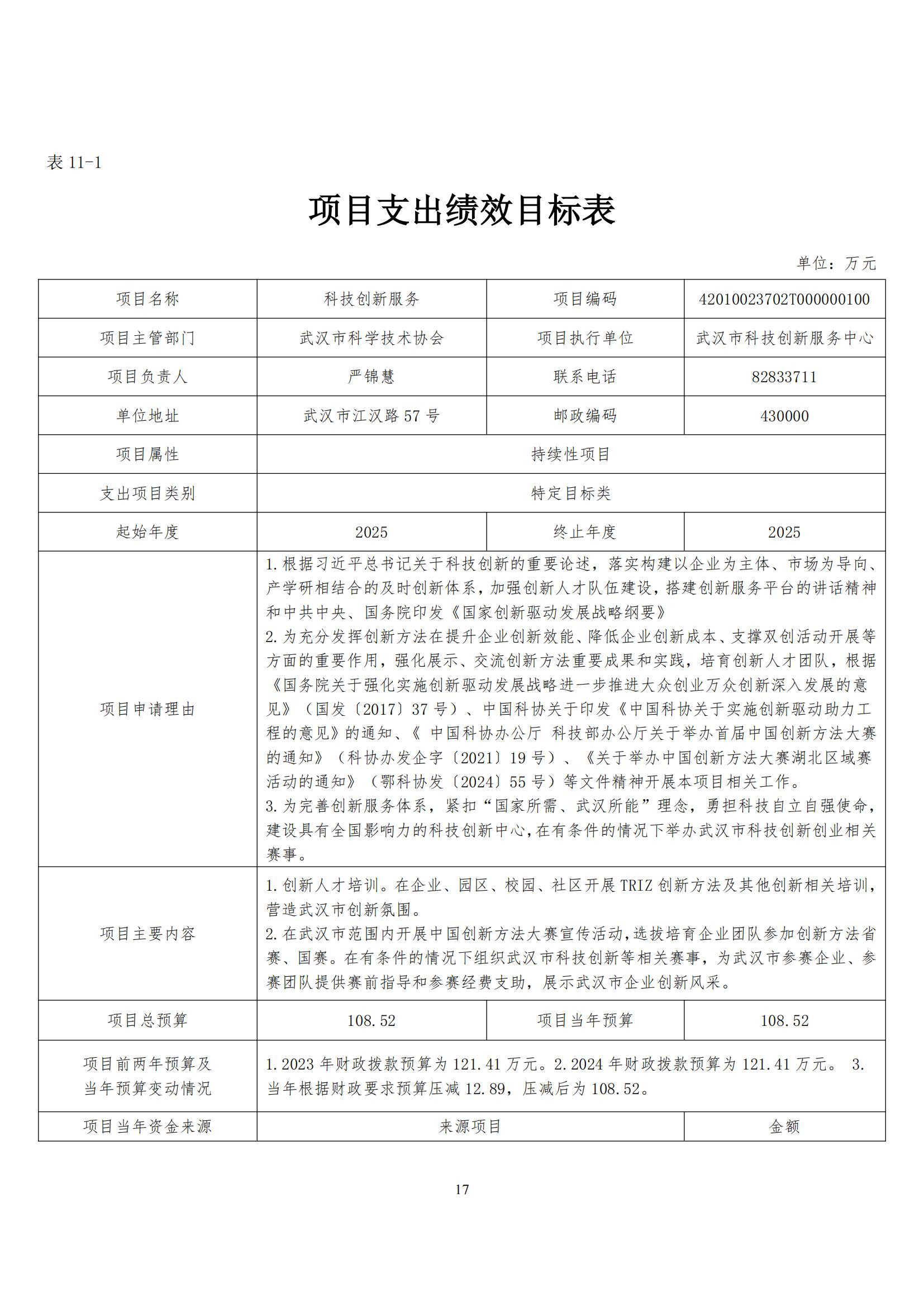 武汉市科技创新服务中心2025年单位预算