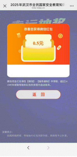 惊喜奖:活动结束后,针对武汉地区的参与者抽取100名发放国家安全宣传品。