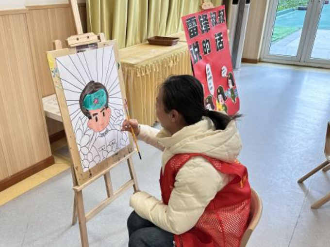 在绘画环节,孩子们纷纷拿起画笔,用自己的方式画出心中的雷锋形象。一幅幅充满童真和创意的画作,展现了孩子们对雷锋精神的独特理解和感悟。活动现场气氛热烈而温馨,孩子们在绘画的过程中,不仅加深了对雷锋精神的理解,也激发了他们对美好品德的追求。