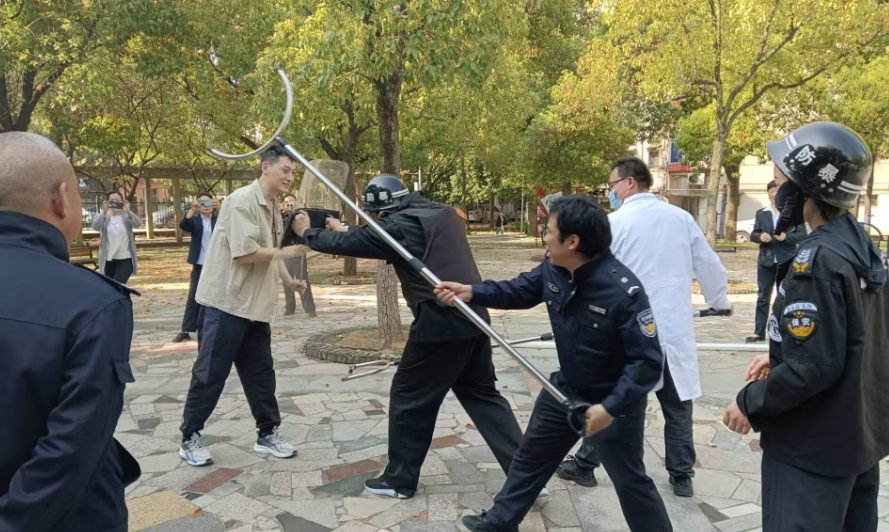防爆安全演练环节,模拟小区突发“暴恐”事件。物业安保迅速拉响警报,设置隔离区,疏散居民;警务室民警快速赶到,与安保人员配合,运用战术成功制服“暴恐分子”。整个过程紧张有序,展示了各方的协同应急能力。