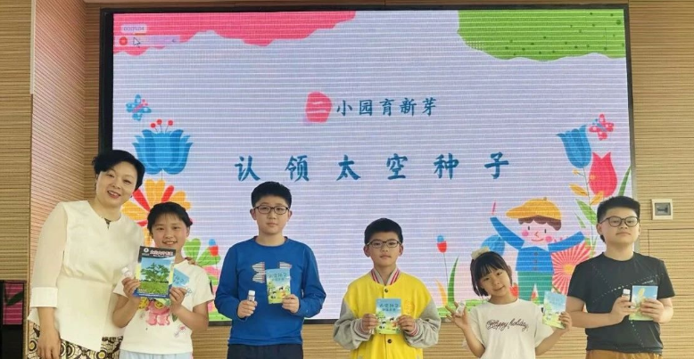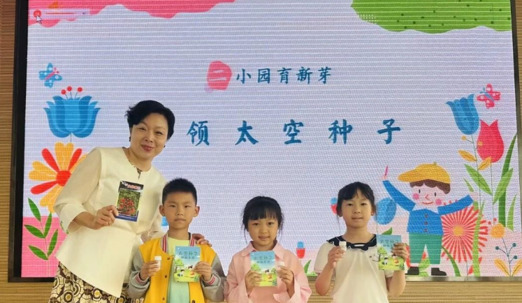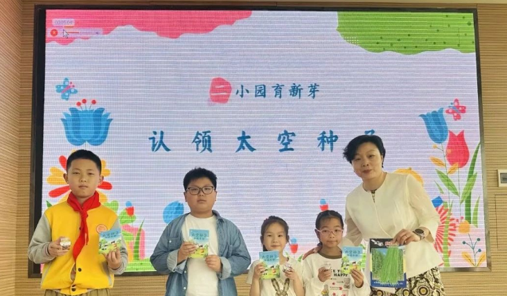 “同学们,你们知道种⼦去过太空后 会发⽣什么吗?”科学达⼈王⽟婧⽼师⽤⽣动的语⾔揭开了“太空种⼦”的神秘⾯纱。