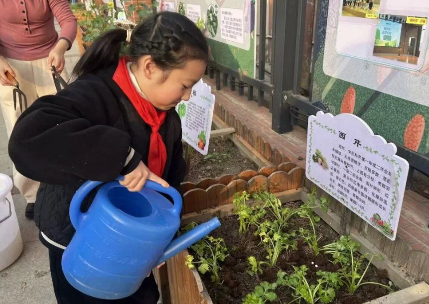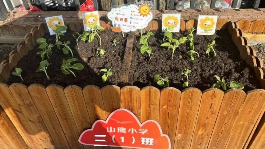 启动仪式结束后,同学们有序来到⼭鹰⼩学“⼀⽶菜园”,化⾝“⼩⼩太空种植员”,种下了太空种⼦,⼀颗颗种⼦承载着梦想与希望,期待新的⼀年,这些种⼦在同学们的精⼼呵护与培育下,开出航天之花,结出科技之果。