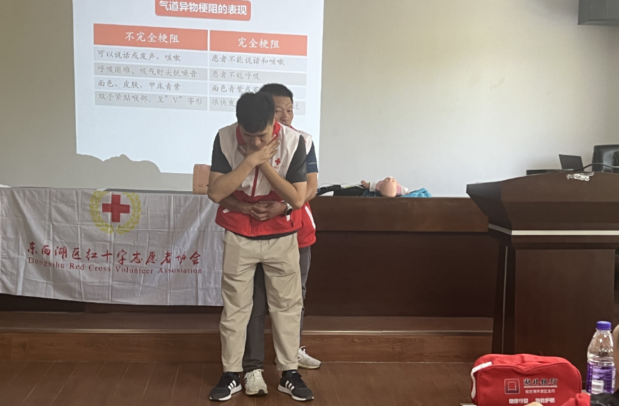 为普及急救知识,提升应对突发心搏骤停、气道异物梗阻等紧急事件的能力。吴家山街梦佳社区联合湖北银行临空港支行、东西湖区红十字志愿者协会,开展AED(自动体外除颤器)使用及海姆立克急救法培训活动,旨在通过理论与实践相结合的方式,增强居民自救互救能力。