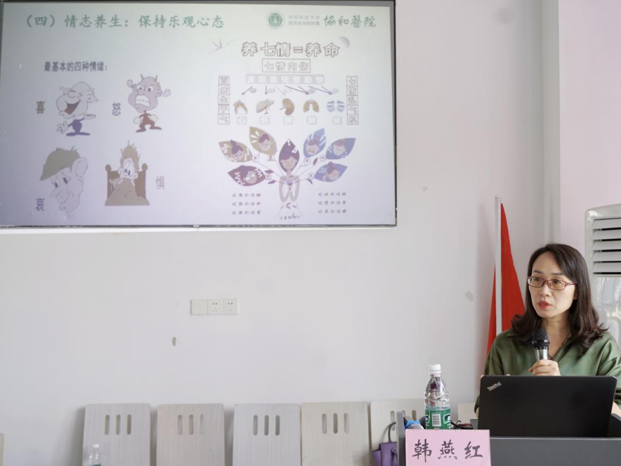 韩燕红博士在宣讲中,从健康的定义与重要性展开,着重强调“健康1+0定律”——健康是人生一切的基础,失去健康意味着失去所有,生动地向职工们传递健康的重要意义。针对职工们普遍存在的健康困扰,如41.9%人群面临的体重、体型管理问题,37.5%人群存在的心理压力、睡眠问题等,她详细讲解了饮食、运动、睡眠、情志四大养生核心内容。在饮食养生方面,韩燕红分享中国居民平衡膳食宝塔及八大准则,用具体的数字明确谷物类、油、盐等每日摄入量;在运动养生上,建议职工们每日保证6000步运动量,每周进行150分钟以上有氧运动,增强心肺功能;关于睡眠养生,她特别强调子午觉的重要性,提醒大家子时前就寝、午时小憩,以达到养阴养肝、养阳养心的效果;在情志养生中,指出七情内伤对身体的危害,教导职工们学会调节情绪,守护心理健康。