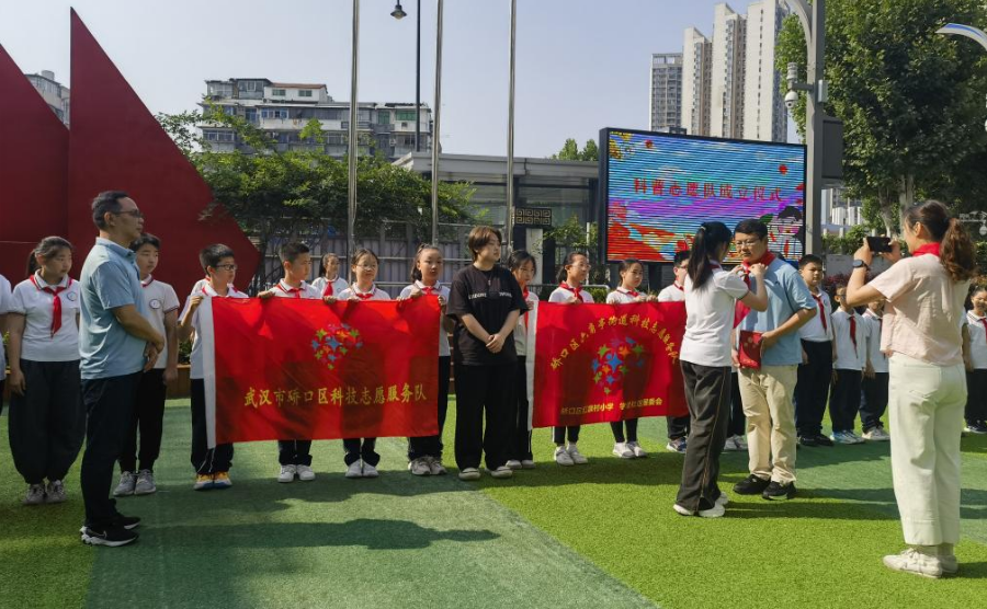 活动现场,硚口区六角亭街道为红旗村小学科普志愿服务队授旗,并聘任学堂社区科普站长为校外科普指导员。后续将开展系列特色科普活动,为“科普进校园”注入持续动力。
