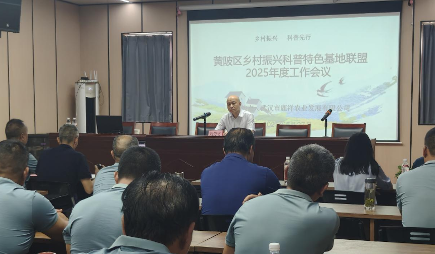 5月27日,黄陂区乡村振兴科普特色基地联盟2025年工作会议在武汉市鹿祥农业发展有限公司召开。区科协党组书记刘俊文,党组成员、副主席陈辉进、胡祺娟,全体联盟成员单位负责人参加会议。