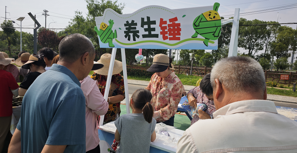 活动现场,包粽子区粽叶翻飞,糯米、红枣在居民手中变成饱满的粽子;绿豆糕制作台飘着清甜香气,大人小孩一起压模成型,体验传统点心的制作乐趣。艾草花束DIY和养生锤DIY区人气十足,居民们将艾草、菖蒲扎成花束挂门前,用布料、艾草缝制养生锤,感受民俗与养生的结合。趣味游戏区更是热闹非凡。“赛龙舟”游戏中,参与者喊着口号协作向前;“射五毒”挑战里,居民们手持弓箭瞄准目标,欢笑声此起彼伏。