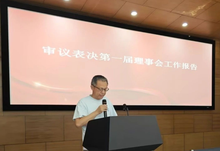 武汉市自然科学博物馆学会第一届理事会副理事长姜昊代表理事会作第一届理事会工作报告