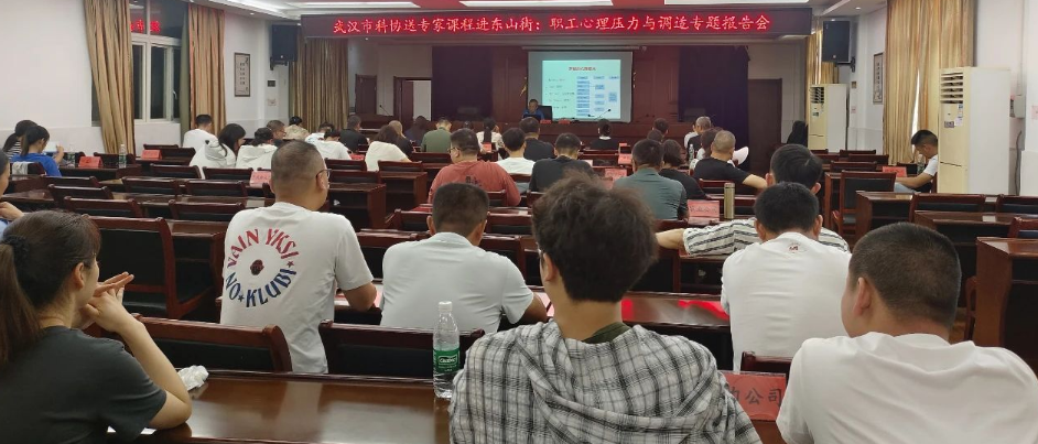 为充分发挥科普资源优势,赋能基层科学治理,2025年7月9日上午,一场以“职工的心理压力与调适”为主题的科普报告会在武汉市东西湖区东山街举行。武汉市科学家报告团团员、教育部关工委“五老”报告团首批聘任专家、华中师范大学郑晓边教授受邀主讲,为街道及社区干部、工作人员带来了一堂生动实用的心理辅导课程。东西湖区科协、东山街办事处相关科室负责人及辖区社区代表等50余人参与此次活动。