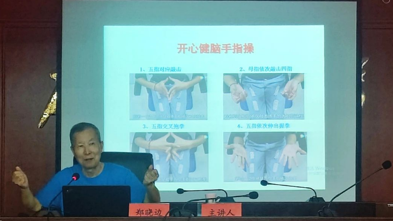 活动开场,郑晓边教授带领现场人员做起了“开心健脑手指操”,简单有趣的动作迅速调动起现场氛围,让大家在轻松互动中放松了身心。随后,他从“人”字的解析入手,结合人格、体能、智能等多个维度,深入剖析身心结构,引导参与者进一步深化自我认知,为后续的心理调适方法讲解奠定了基础。
