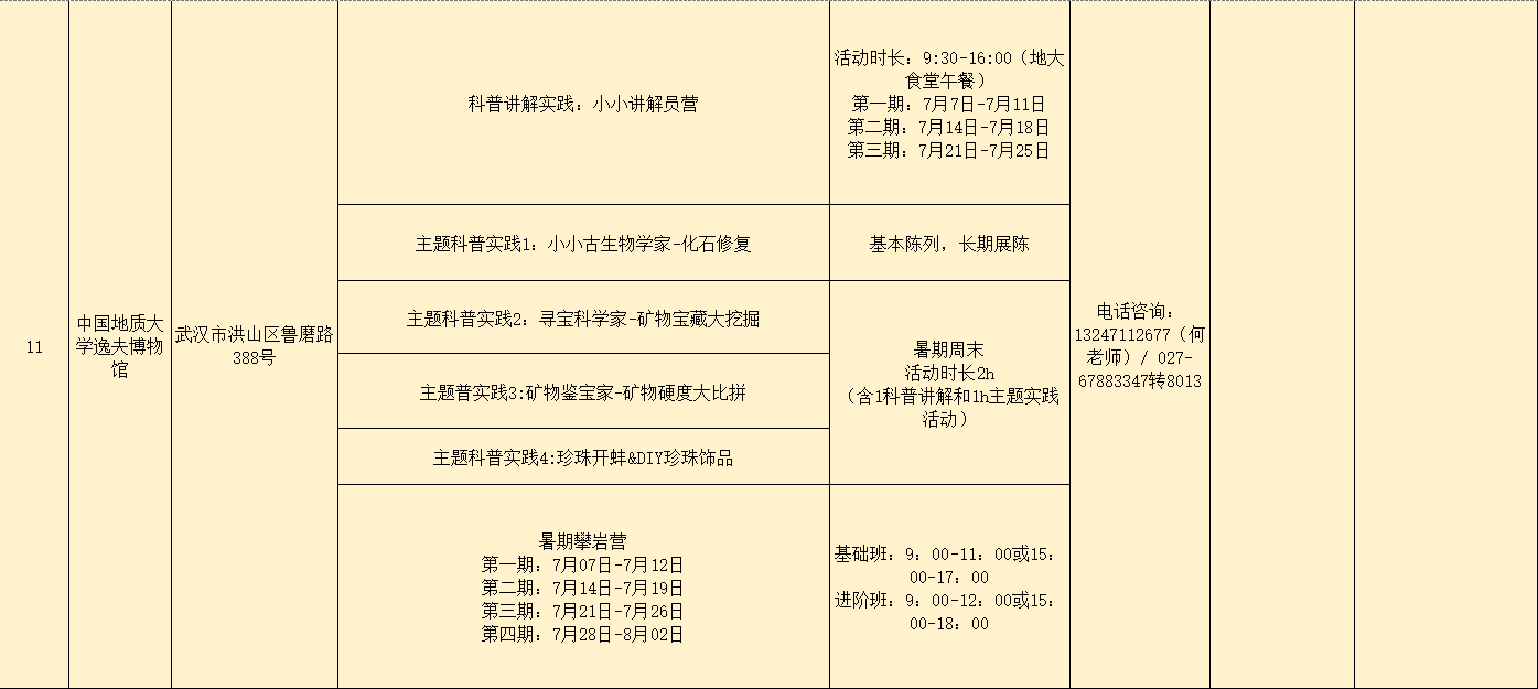 本次活动涵盖了武汉科学技术馆在内的武汉市自然科学博物馆学会11家成员单位的48种类别的近百场活动,包括主题研学营、夏令营、探索营、暑期托管营、小小志愿者活动、博物馆趣味课堂、博物馆奇妙夜、科普剧、科普沙画、大师见面会、主题展览、科普艺术展、科普作品征集、自然探秘等内容。