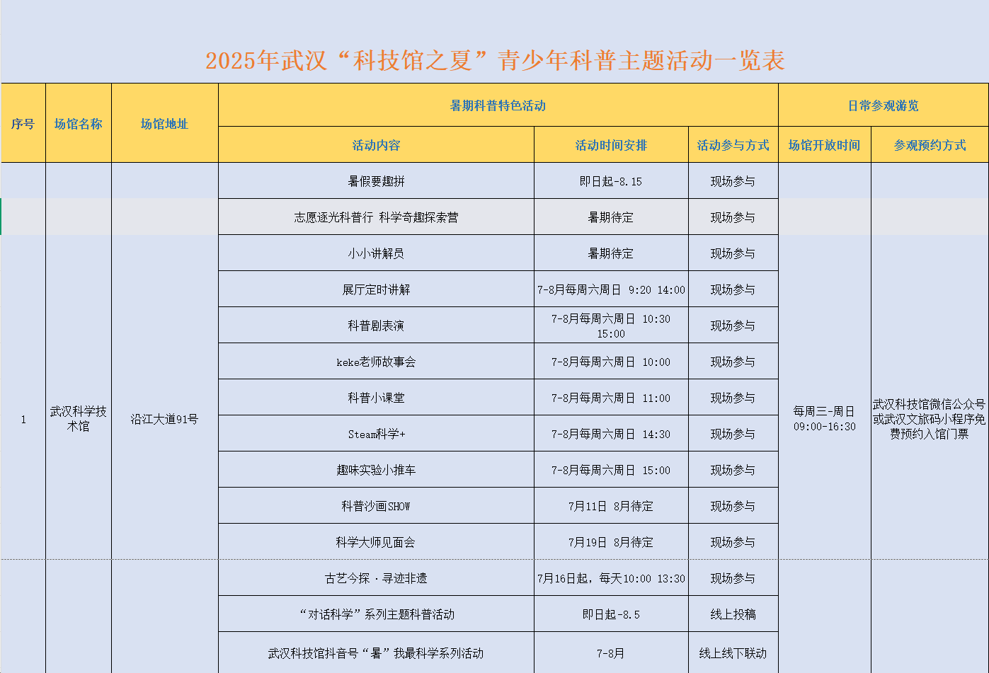 青少年科普主题活动一览表