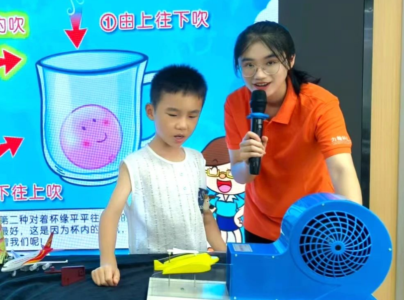 随后,科学实验秀瞬间点燃现场气氛。足球飞机腾空、僵尸气球“舞动”、魔法飞杯“出逃”等奇妙实验一一上演,实验老师一边操作一边深入浅出讲解背后的伯努利原理,并邀请孩子们上台参与互动,让他们亲身感受科学的神奇力量,极大地激发了孩子们对科学的兴趣和好奇心。现场惊叹声、欢笑声此起彼伏,孩子们在积极互动与踊跃提问中,轻松叩开科学探索的大门。
