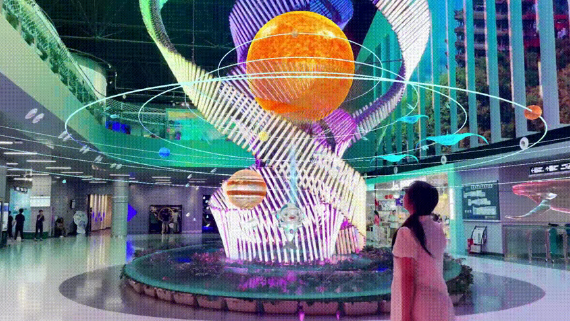 观众在参观武汉科技馆过程中只需佩戴好AR眼镜,走到对应展品面前注视,AR眼镜便会自动识别,观众还可通过手势互动唤醒科学小博士“奇奇”,它将作为本次奇妙之旅的虚拟向导,带领大家穿越浩瀚宇宙,从地球生命起源到现代文明科技,揭开科学王国中的种种奇思妙想,一段奇妙有趣的时空穿梭之旅就此展开。