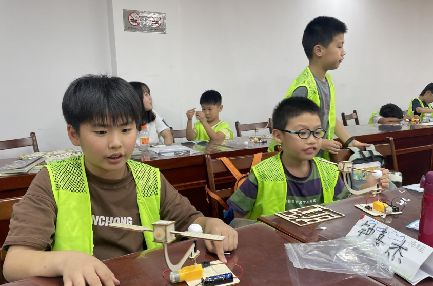 进入制作环节,孩子们今天的任务是“DIY电动轨道卫星”。老师先演示了制作步骤,孩子们认真聆听。在制作中,有的小心翼翼地按编号取零件,有的专注地将马达固定在底座上。当遇到小难题:“太阳翼总是掉下来怎么办?”“电池装进去没反应呢?”老师手把手教他们调整角度、检查电路。当第一组的模型通电后,轨道卫星围着地球缓缓转动,孩子们欢呼起来:“我们成功啦!”半小时后,一个个迷你 “北斗卫星”在孩子们手中“升空”,他们捧着自己的作品,争相向老师展示,脸上洋溢着成就感。