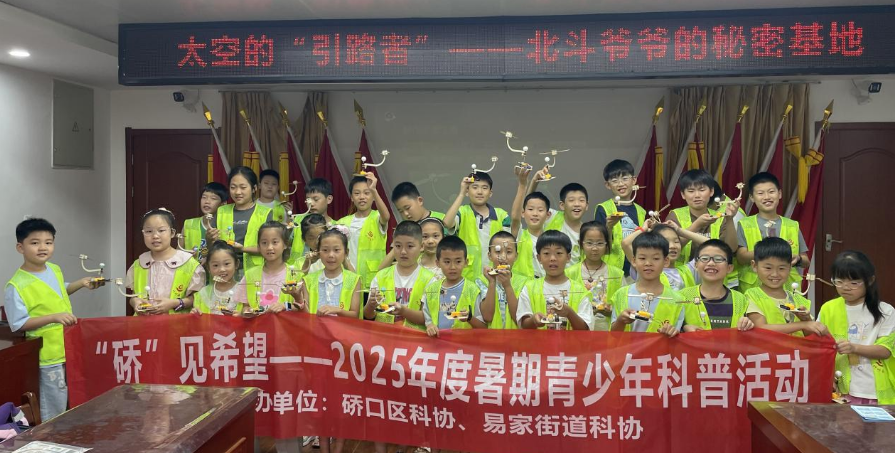 7月15日,硚口区科协举办了“硚”见希望青少年暑期首场活动。区科协联合易家街科协、竹叶海社区,在竹叶海社区活动中心顺利开展“北斗爷爷的秘密基地”青少年科普实践活动。来自社区的三十余名青少年参与其中,活动旨在通过生动有趣的天文知识讲解与动手实践,让青少年了解北斗七星与北斗卫星导航系统,激发科学探索兴趣,增强民族科技自信。