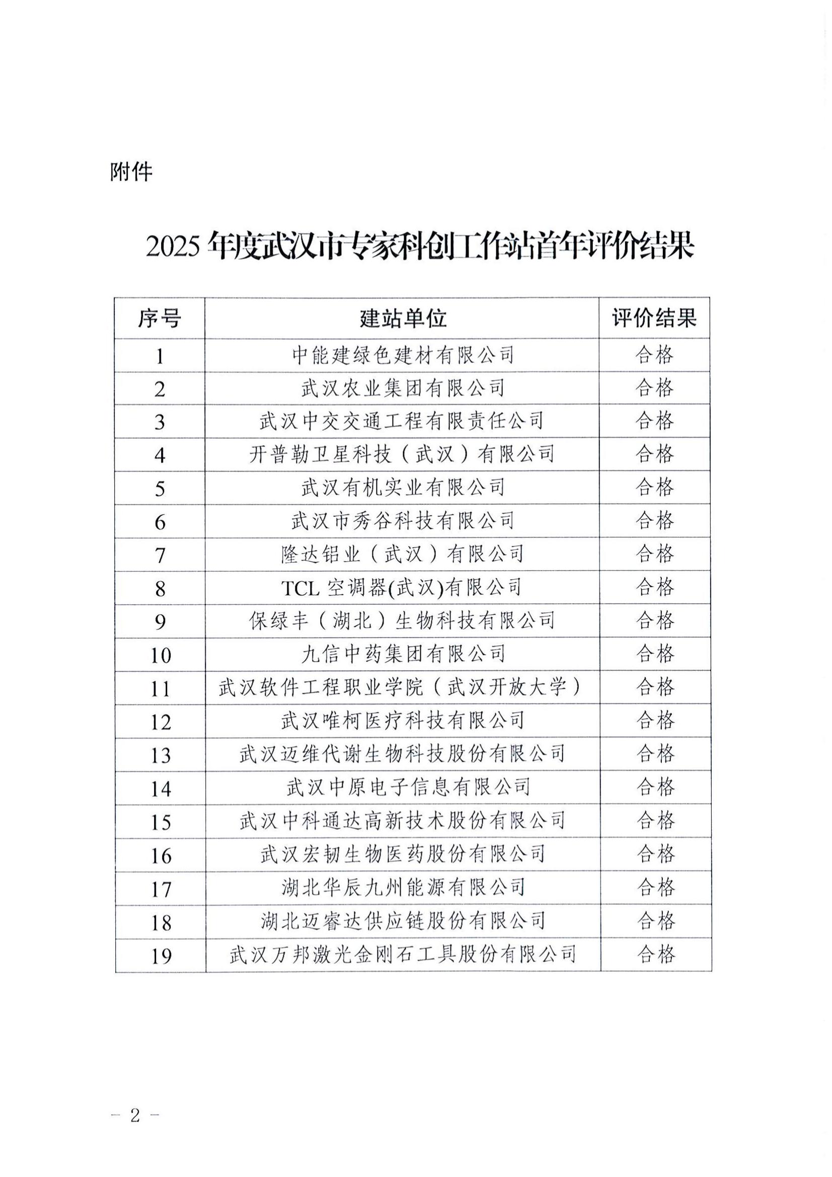 市科协关于公布2025年度武汉市专家科创工作站首年评价结果的通知