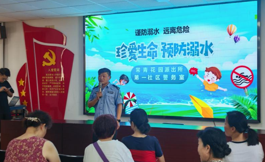时间倒回6月中旬,在常青第一学校的教室里,第一社区的叔叔阿姨拉着高峰警官,给同学们支了满肚子“玩水安全招”。警官叔叔用孩子们听得懂的话语提醒:“想游泳?得去有救生员的正规地方,野河野塘可不能碰!”“看到小伙伴落水,千万别急着跳下去——你不是超人,喊大人来帮忙才是真聪明!”看着孩子们使劲点头的样子,就知道这颗“安全种子”已经种下了。