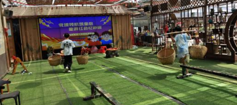 活动当天一大早,孩子们满怀期待地来到集合地点。出发前,社区工作人员组织开展了爱国主题木质摆件DIY环节。孩子们充分发挥想象力,认真制作,不一会儿,一个个饱含爱国情怀的木质摆件便在他们手中诞生。随后,大家分组体验了爱国趣味游戏——“朱德的扁担”和“飞夺泸定桥”。在游戏中,孩子们仿佛穿越回了革命年代,深刻体会到了革命先辈们不畏艰难、勇往直前的精神,现场加油声、欢笑声此起彼伏。