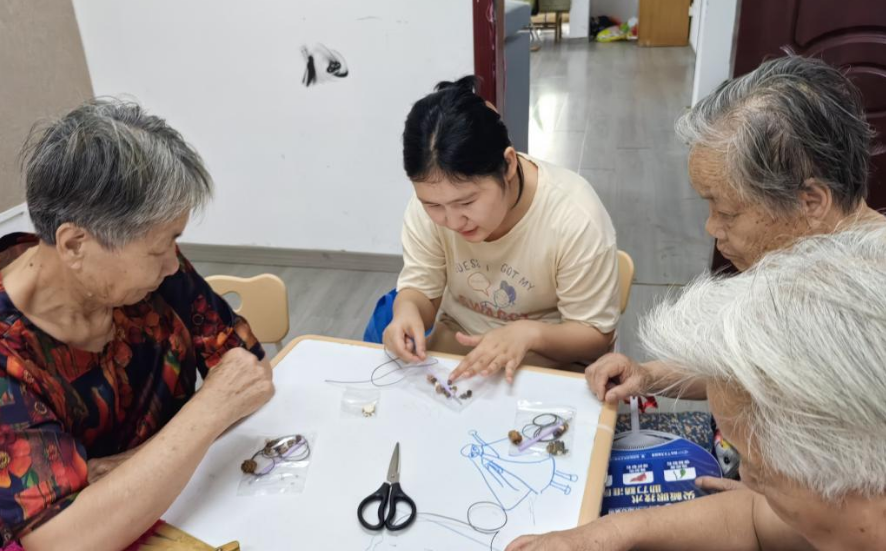 活动伊始,社工通过图文并茂的讲解,向居民介绍了艾草、陈皮、丁香等中药材的药用价值与文化内涵。“原来这些常见的小药材不仅能治病,还能做成漂亮的手链!”居民赵阿姨在听完讲解后感慨道。随后,在志愿者指导下,大家挑选药材、搭配彩珠、编织绳结,将传统智慧与现代创意相结合。活动现场欢声笑语不断,不少居民互相交流配色技巧,年长者主动为年轻人讲述药材的民间用法,年轻群体则帮助老人穿针引线,展现了社区邻里互助的温情。