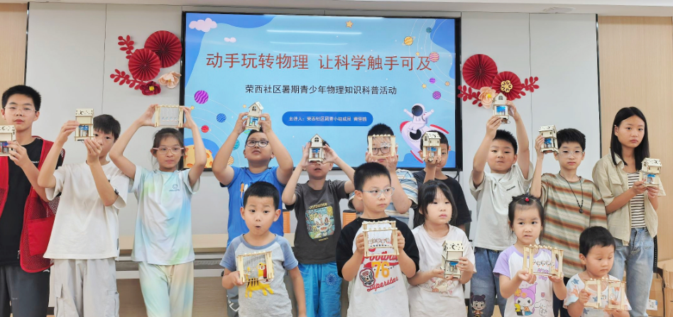 此次物理科普亲子活动,不仅让青少年在动手实践中直观理解了抽象的物理原理,更搭建了亲子互动、邻里交流的平台。而社区团青小组成员、大学生志愿者的参与,也为活动注入了青春力量,充分体现了社区多元力量联动服务青少年的成效。未来,荣西社区将持续挖掘社区资源,策划更多贴近青少年兴趣的科普活动,让社区成为青少年探索科学、增长见识的“第二课堂”,助力孩子们在科学启蒙中培养创新思维与实践能力,为成长埋下热爱科学的种子。