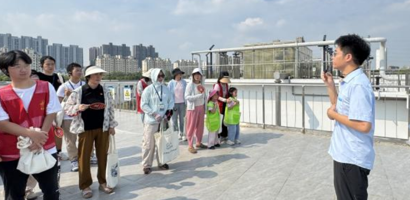 活动首站,社区居民与志愿者走进中建三局绿投公司承建的黄孝河机场河水环境综合治理项目,在专业人员的细致科普讲解下,大家近距离观摩了“污水化清流”的核心工艺环节——高密度沉淀池的运行过程。