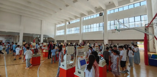 今天的横店街道实验学校变身科学乐园。四地科普大篷车带来八十件有趣的互动车载展品、精心编排的科学实验秀《探秘红蓝》《“球”,你别秀了》《小气球大道理》,以及机器狗和机甲大师表演、非遗展示等丰富多样的活动,让孩子们打卡体验,乐在其中。“科普大篷车+”全国科普月活动让书本上的科学知识变得立体生动、触手可及,孩子们直呼:原来科学有趣又好玩!