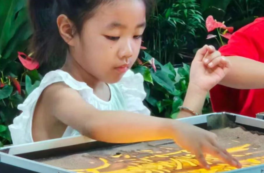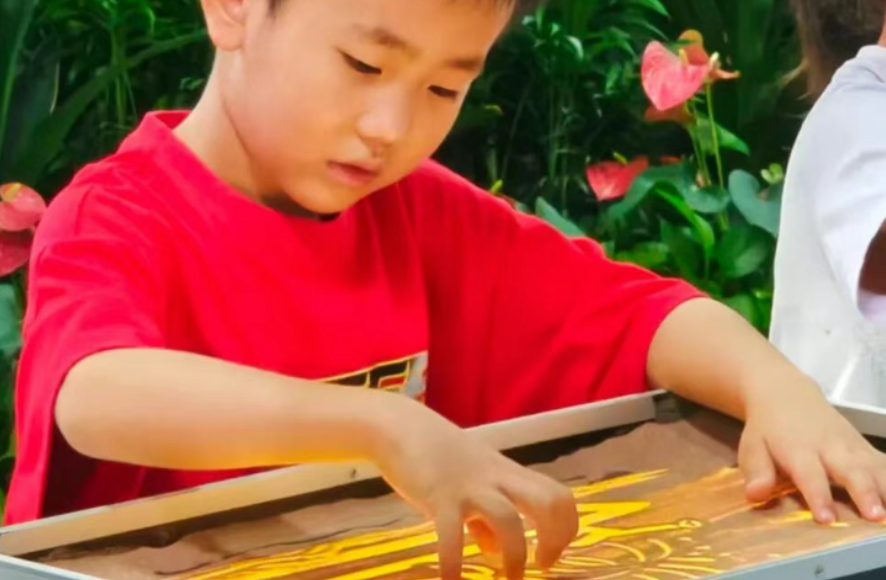 欣赏和学习了关于无线充电的科学知识,沙画体验是现场观众最期待的环节,未来的小小沙画师积极加入到创作体验中,纷纷尝试用手中的细沙描绘看到过的最美烟花和秋天丰收的麦穗。