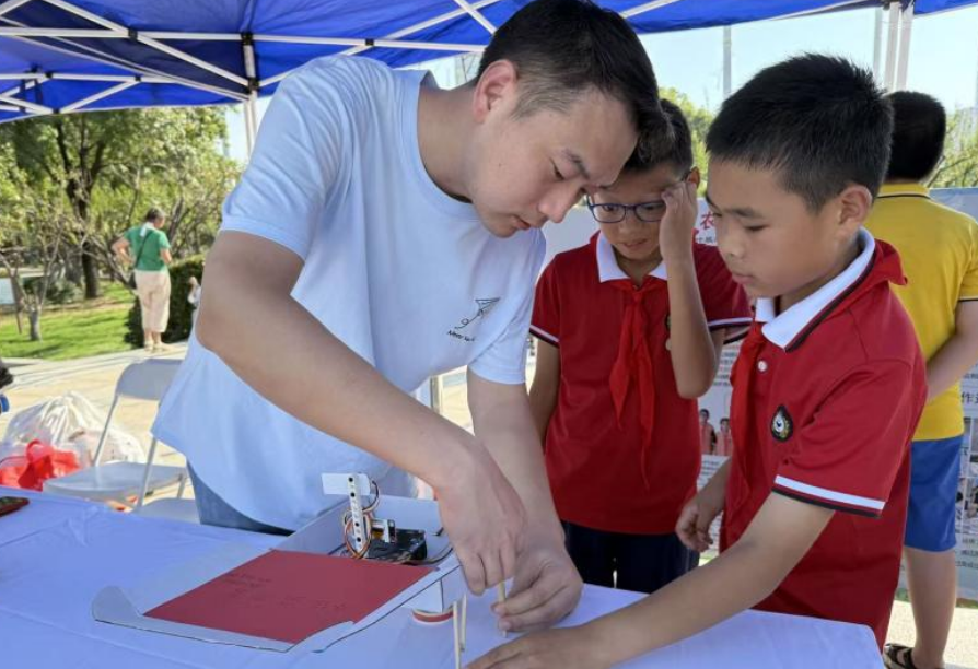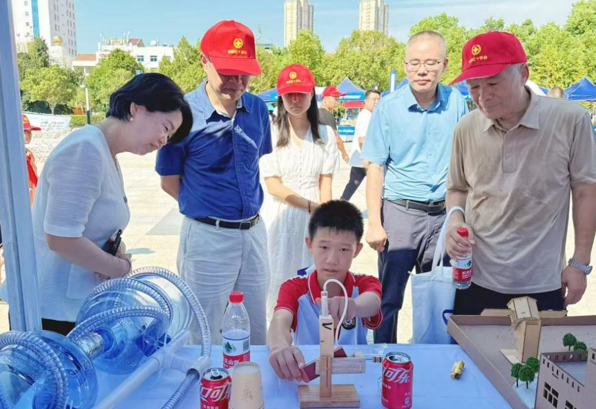 操控航模上演紧张刺激的水上足球对决、拿起丁烷燃烧脉冲炮对着天空发射出安全可控的空气炮……9月16日上午,新洲区人民广场上空烈日炎炎,也挡不住孩子们对科学的向往与热情——由新洲区科学技术协会、新洲区教育局联合主办的新洲区2025年全国科普月主场活动暨中小学师生科技创新实践展演正在此隆重举行。