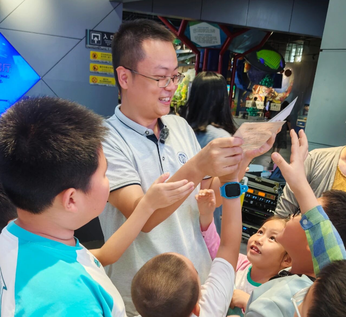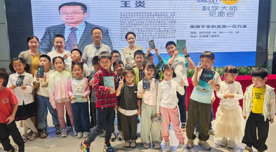 互动环节,王教授提问,现场观众积极回答。幸运小观众不仅抢答成功,而且还获得了王教授签名赠送的物理科普读物《原来这就是引力》。通过此次见面会活动,观众领略了宇宙的浩瀚,被科学家们在科研工作中永无止境的探索精神所感染。王教授感言,引力波探索还有很多未知,希望现场的小观众未来能探知更多关于宇宙的谜题。他寄语小观众:祝你们在引力波的知识海洋有所收获!