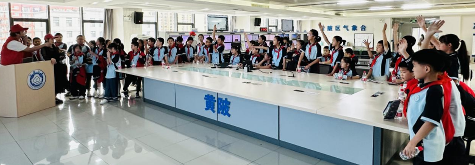 研学最后一站抵达黄陂区气象台,现代化气象业务成果让师生们眼前一亮。气象工程师重点介绍了高效精准的气象预警信息发布平台、智慧便民的旅游气象数据服务平台,以及集成智能的“天气盒”终端设备,集中展现了气象科技在公共服务和防灾减灾领域的前沿应用。现场设置的气象知识竞猜环节将活动推向高潮,“黄陂区最高气温是多少度?”“雷雨来临时应如何避险?”等问题抛出后,学生们踊跃举手、积极作答,在互动中巩固知识,感受气象科学的奥秘与魅力。