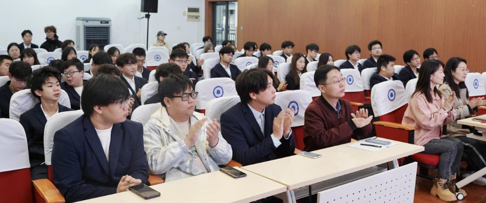 互动环节中,有学生问“土木行业就业前景”,付伟没有回避焦虑,而是结合自身经历分享:“我博士毕业做路面研究时,也有人说‘修路没前途’,但我们在川藏、青藏公路用防裂技术解决了实际问题,这就是价值。”他指着PPT里“技术应用全国分布图”,15省4000万平米的应用面积、减少5500吨二氧化碳排放的数据格外醒目,“行业需要的不是‘喊口号’,而是像工匠一样把每一个细节做好,像科学家一样把每一个问题搞透。”还有学生问房屋防水与路面防裂技术的关联,他笑着回应:“我们和产品公司联合研发的卷材,本质都是‘解决裂缝问题’,只是场景不同——这就是科学家精神里的‘举一反三’,也是工匠精神里的‘触类旁通’。”