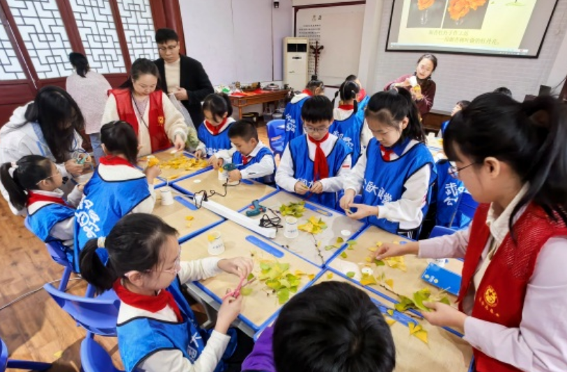 为丰富青少年周末课余生活,传承自然与手工文化,2025年11月14日上午,荣华街道建国社区、硚口公园大课堂、建乐村小学在硚口公园、尚和书院联合开展“金叶生花,少年巧作——银杏牡丹手作工坊”荣华街道社区教育一节好课活动,建乐村小学的同学们在自然探索与动手实践中收获满满。