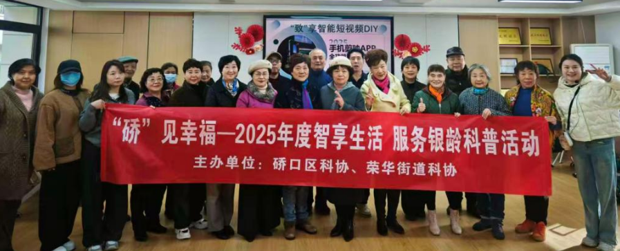 为提升辖区老年群体数字技能、丰富银发生活,12月3日,硚口区科协、荣华街道科协联合荣西社区,在荣华街荣华西村19栋四楼活动室,开展智享智能短视频DIY专题培训,辖区老年居民及社区工作人员参与,以“理论+实践”模式,帮助长者了解掌握短视频制作技能。