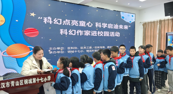 活动尾声,青山区关工委主要负责人代表主办方为钢城十七小赠送了一批科幻书籍,让孩子们的科幻探索之路有了更坚实的“养分”。钢城十七小校长表示,学校一直注重培养学生的科学素养和创新思维,这次活动让科幻从书本走进校园,为孩子们的想象力搭建了更广阔的展示与交流平台,“看着孩子们眼里的光,我们就知道这场活动真正走进了他们心里”。