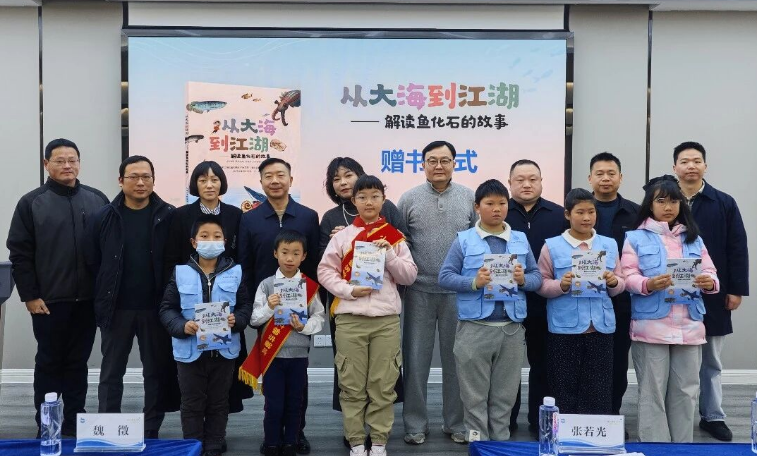 市科协网讯 12月27日,《从大海到江湖——解读鱼化石的故事》新书发布会暨2025年江城科普智慧行活动在湖北地质博物馆隆重举行。党组成员、副主席张若光,湖北省地质科学研究院党委书记、院长杨波涌,湖北科学技术出版社副社长向冰、省地质局科技处副处长魏徵、江汉区科协主席郑瑢等嘉宾齐聚现场,以鱼化石为媒介,开启一场融合地质科学探索与科普传播创新的科普交流活动,为江城公众带来沉浸式的地质科普体验。