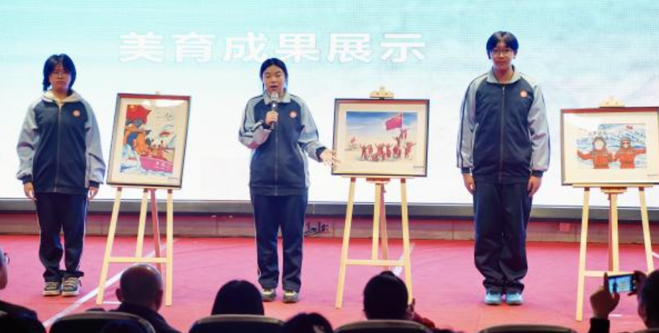 当原创歌曲《少年游》的旋律在报告厅缓缓落幕,一幅幅南极主题画作映入眼帘,12月26日下午,武汉市汉铁高级中学这场“以美为翼 逐光向南”的科学家精神特色宣讲活动,将武汉大学安家春教授的《五星红旗在南极高高飘扬》宣讲,打造成一场融合科学家精神与美育实践的沉浸式盛宴。它打破传统宣讲边界,以武汉大学中国南极测绘研究中心安家春教授的极地科考亲历为轴,将科学家精神,化为一个个有温度、有触感的故事与对话,深深烙刻在近200名高中生心中。
