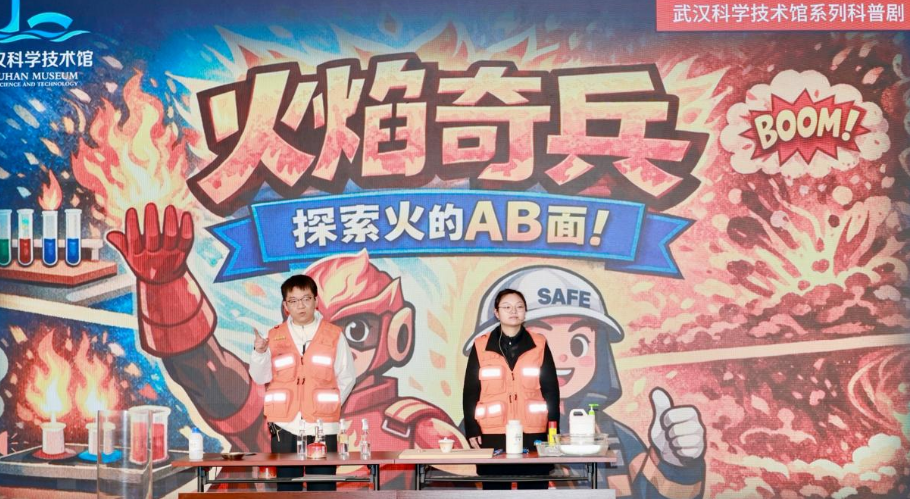 “认知篇”聚焦风险识别,将安全意识扎根市民心中。武汉科技馆带来的科学实验秀《火焰奇兵》,用趣味实验展示震撼的视觉效果,一边揭秘焰色反应、粉尘爆炸等科学原理,一边手把手教大家“油锅起火盖锅盖、电器起火先断电”等实用避险知识;江汉大学特种所推出科普互动《生活不爆炸——爆燃事故的安全预防科普》,揪出日常被忽略的安全盲点,扎牢安全防线;武昌区科协携手武汉市第三医院带来暖心舞台剧《“童”心守护 远离灼伤》,用童趣满满的剧情传授急救知识,在青少年心中种下安全意识的“种子”。