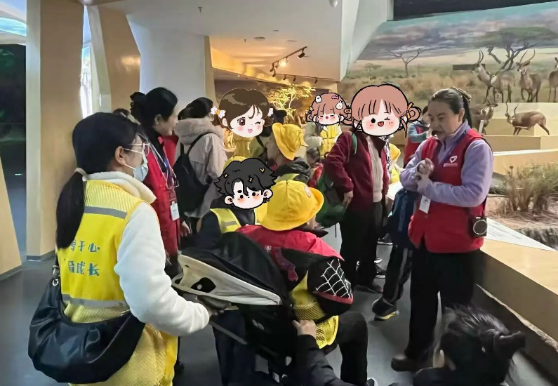 活动以“情感安全”“感官启蒙”“常规建立”为核心理念,针对特殊儿童的心理与生理特点设计流程。在长江文明馆(武汉自然博物馆)实践场地中,通过统一配备标识服装和帽子、设置动静交替的环节、精选具象化展品等方式,帮助参与儿童在安全包容的氛围中感知自然形态与色彩,初步建立集体规则意识与社交礼仪。