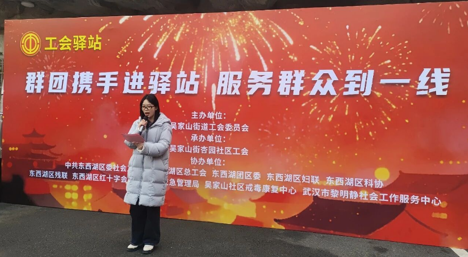 寒风送暖,情系一线。1月28日上午,吴家山街杏园社区工会驿站暖意融融,区科协、区总工会等群团部门在杏园社区工会驿站开展“群团携手进驿站 服务群众到一线”主题活动,将科学知识、政策关怀、文化滋养与暖心物资精准送达外卖骑手、电商从业者、环卫工人等新业态就业群体手中,让奔波在寒冬里的城市建设者们感受到实实在在的关怀与温暖。
