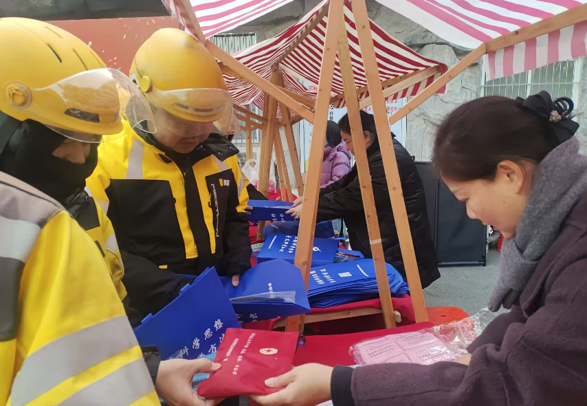 活动现场,各部门分工协作、亮点纷呈。区科协科技志愿者与社区志愿者们早早布置好服务专区,一边热情接待前来休憩的新业态劳动者,一边细致讲解冬季户外作业防寒保暖技巧、常见意外伤害应急处置等实用科普知识,用通俗易懂的语言解答大家日常工作中遇到的各类疑问。“户外工作时怎么防护冻伤?”“冬季伤口的正确处理方法?”互动交流中,劳动者们主动提问,志愿者们耐心回应,现场氛围热烈而温馨,让科普服务真正走进群众心里。
