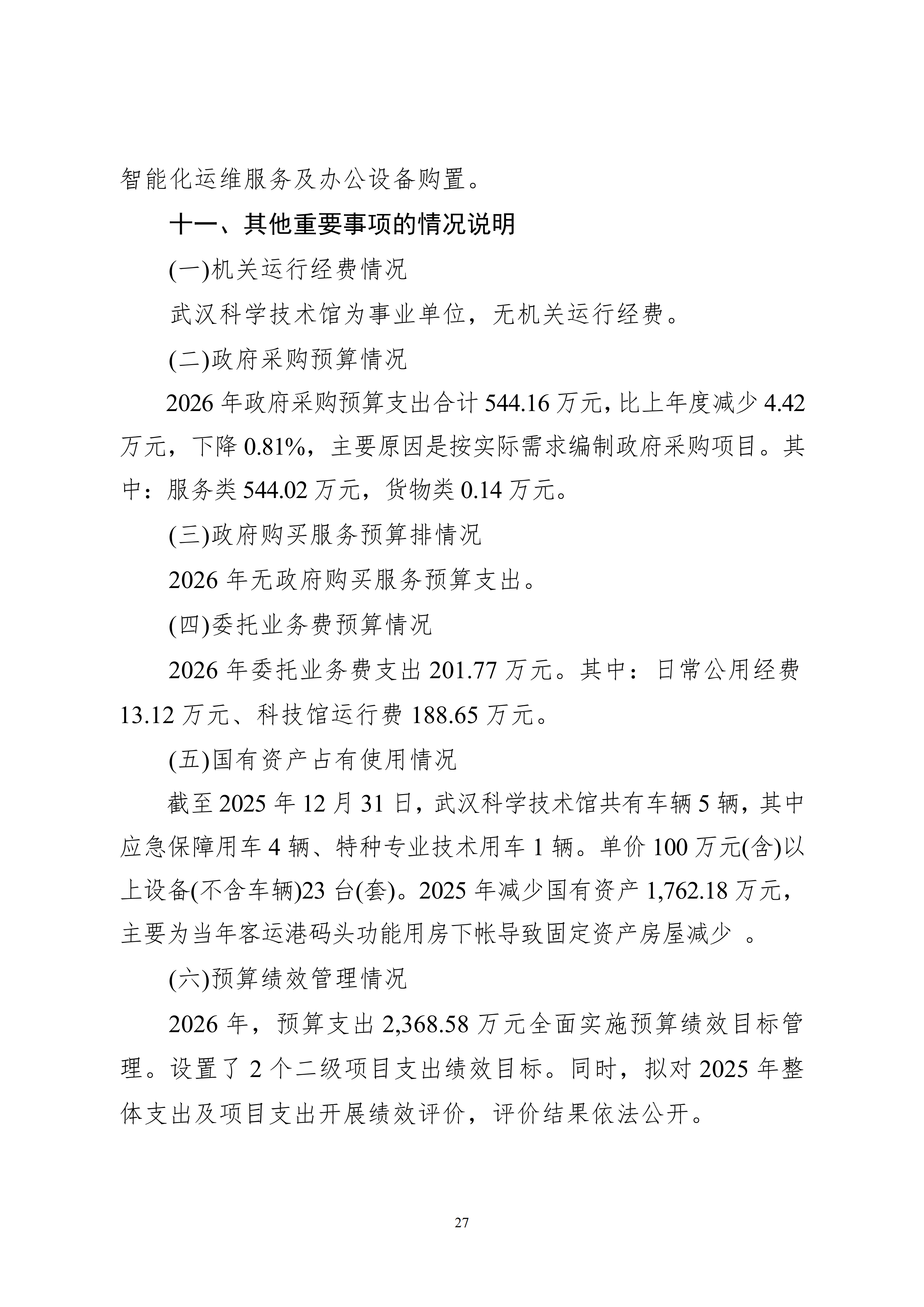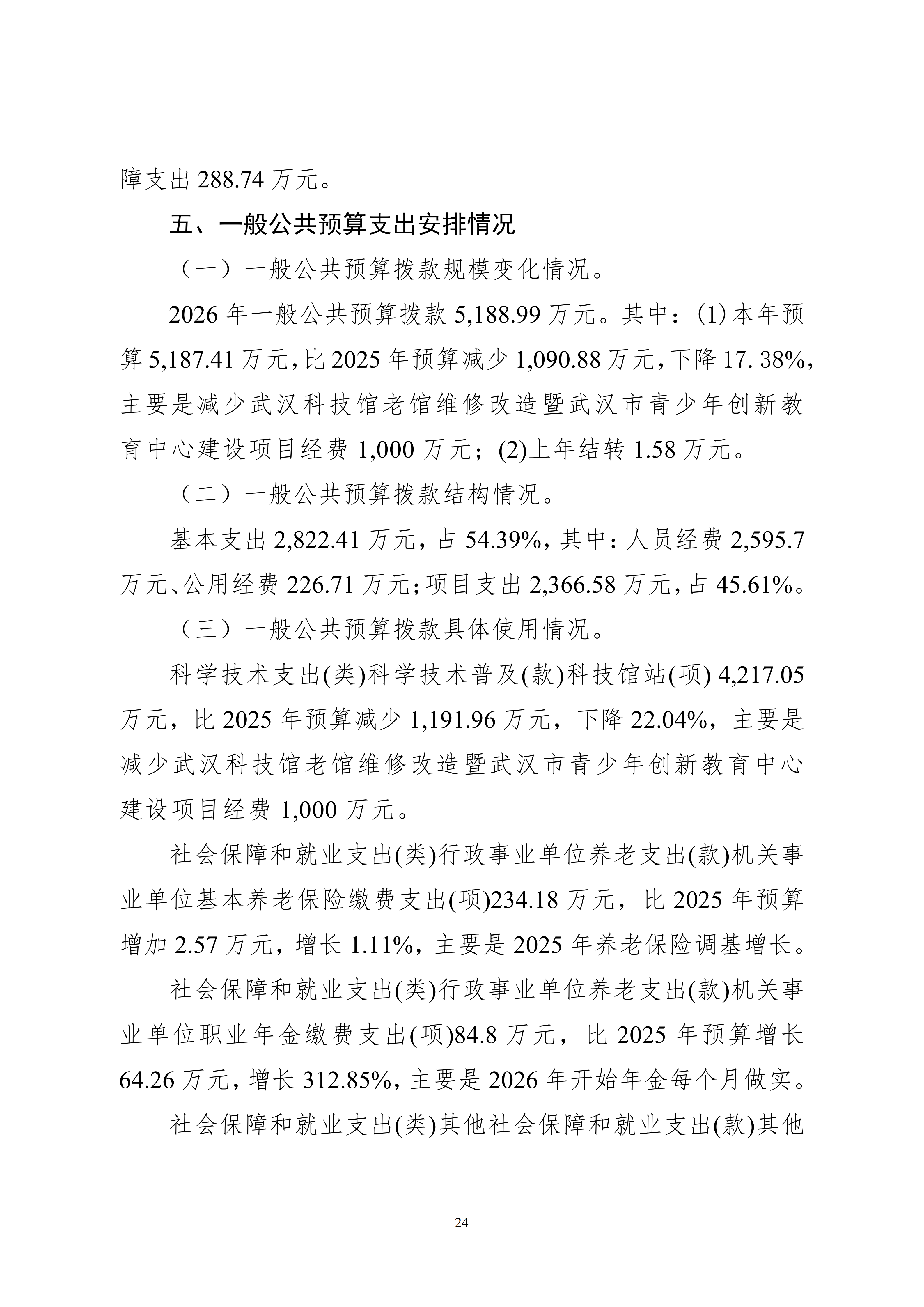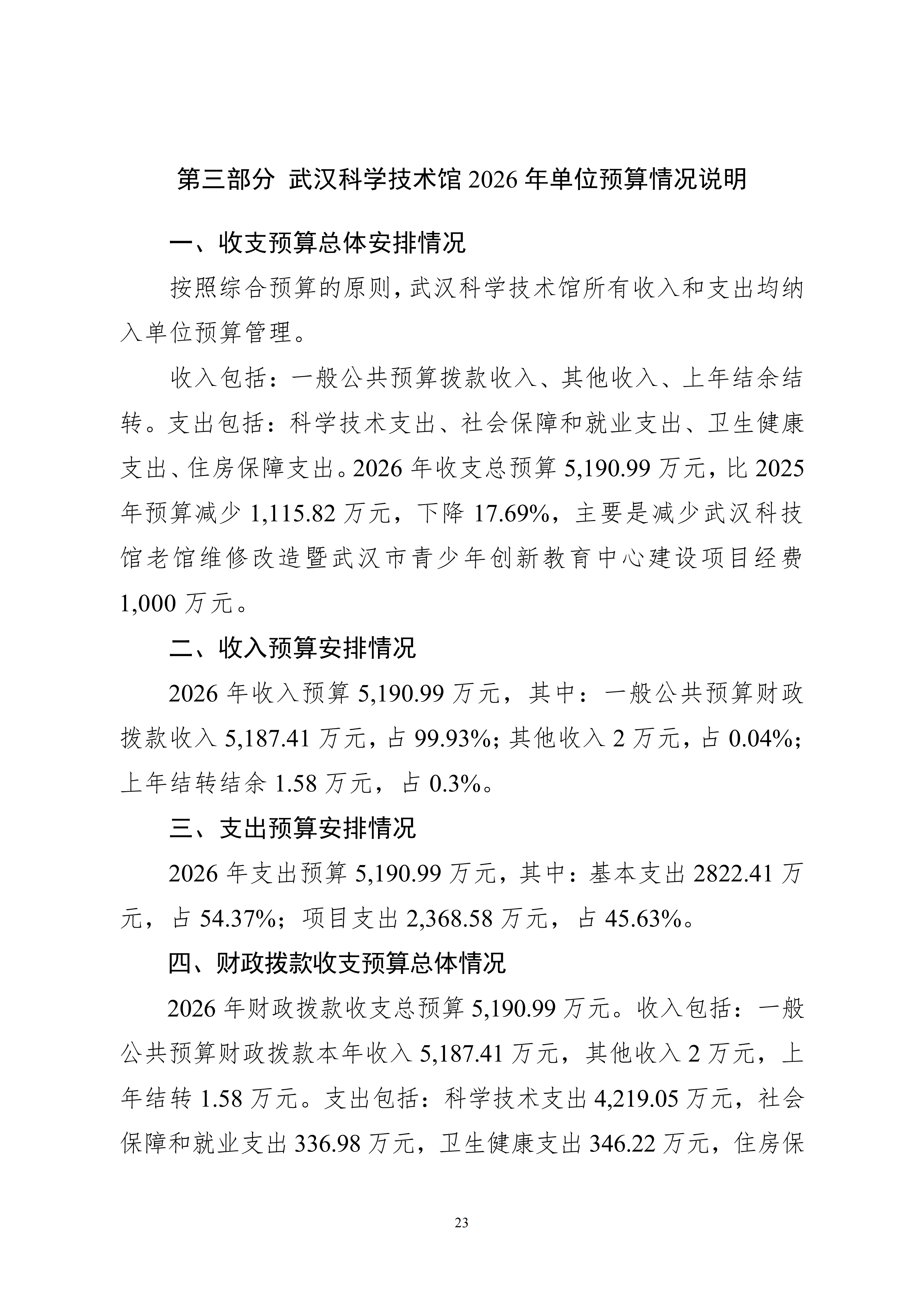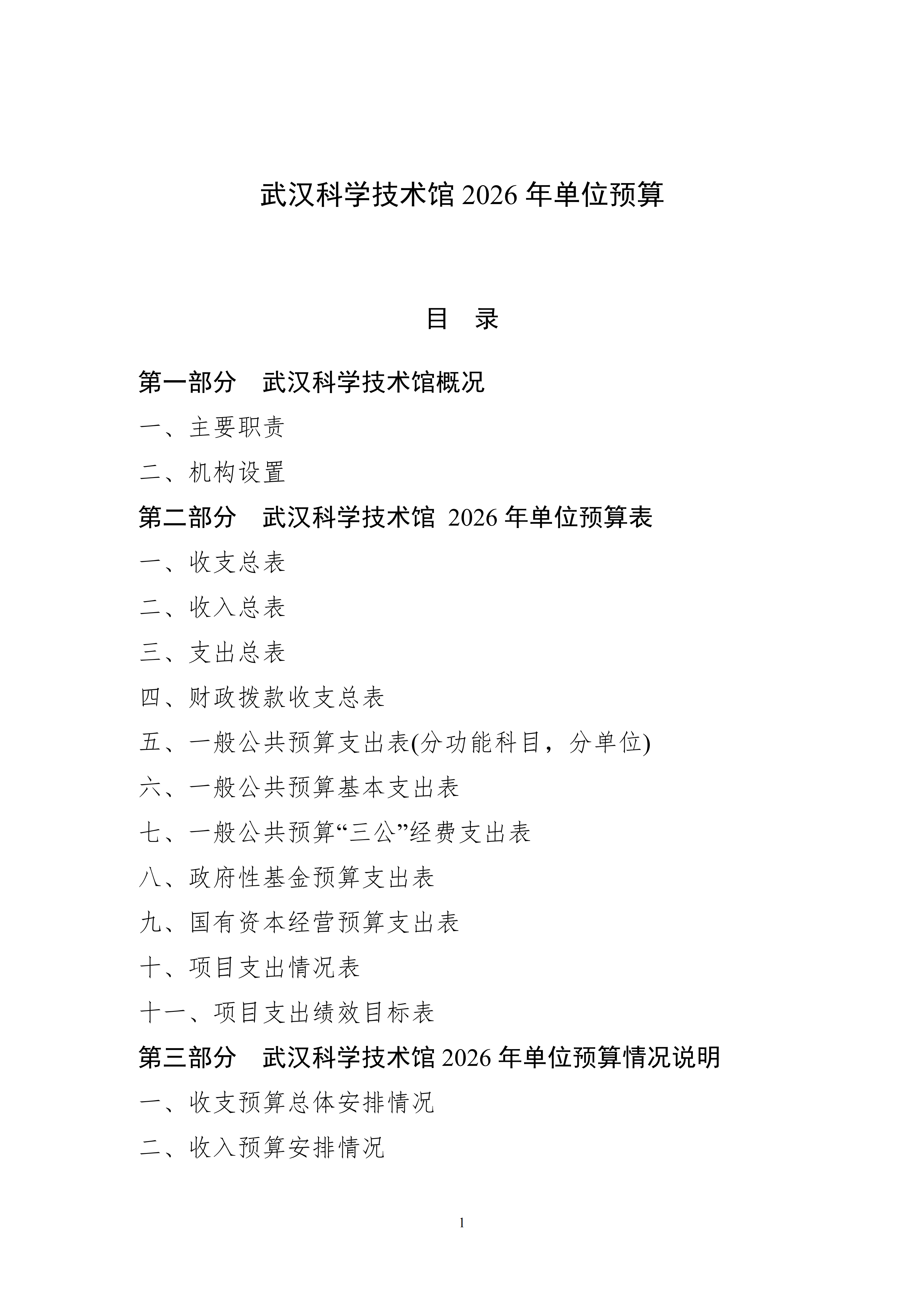 武汉科学技术馆2026年单位预算