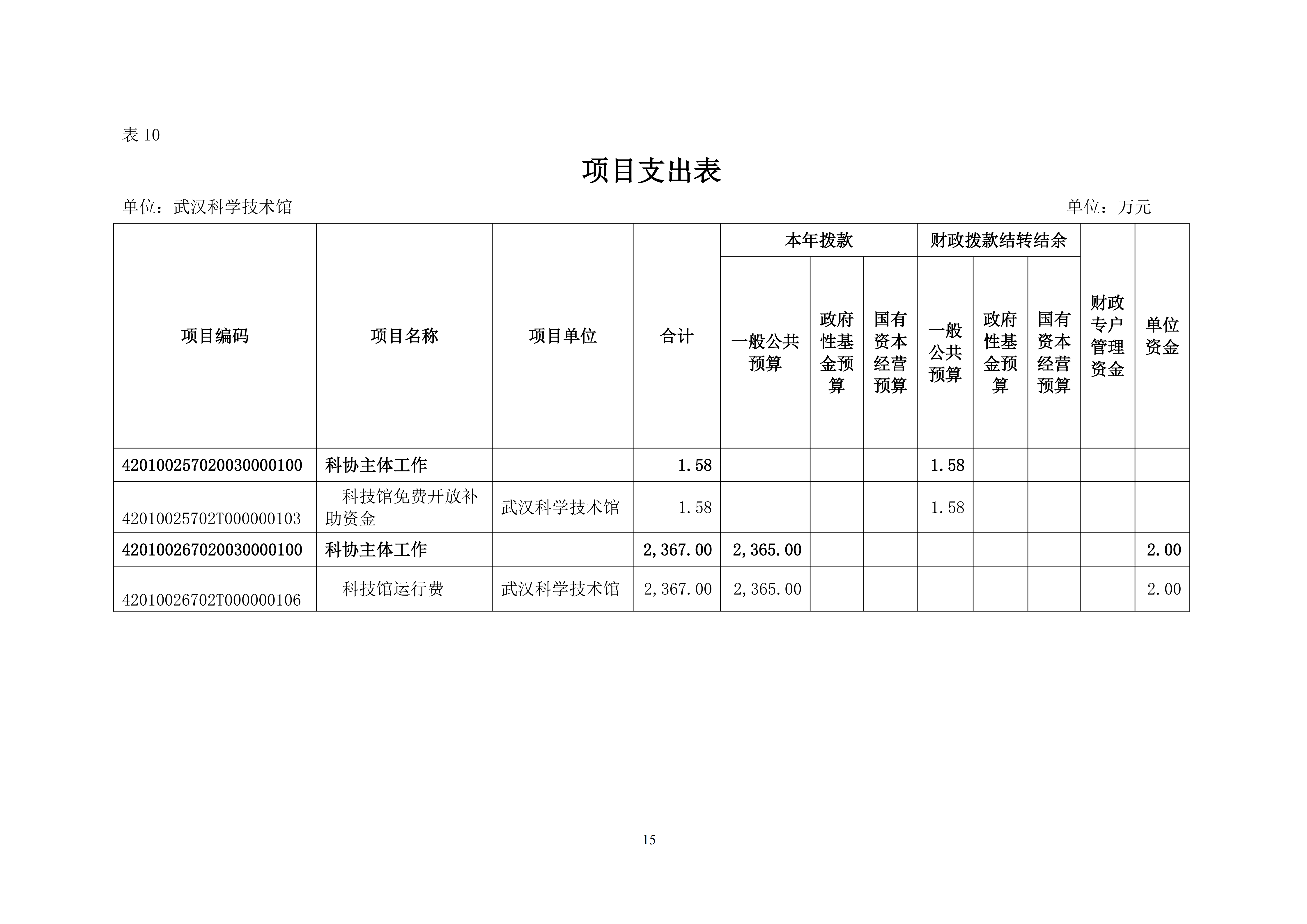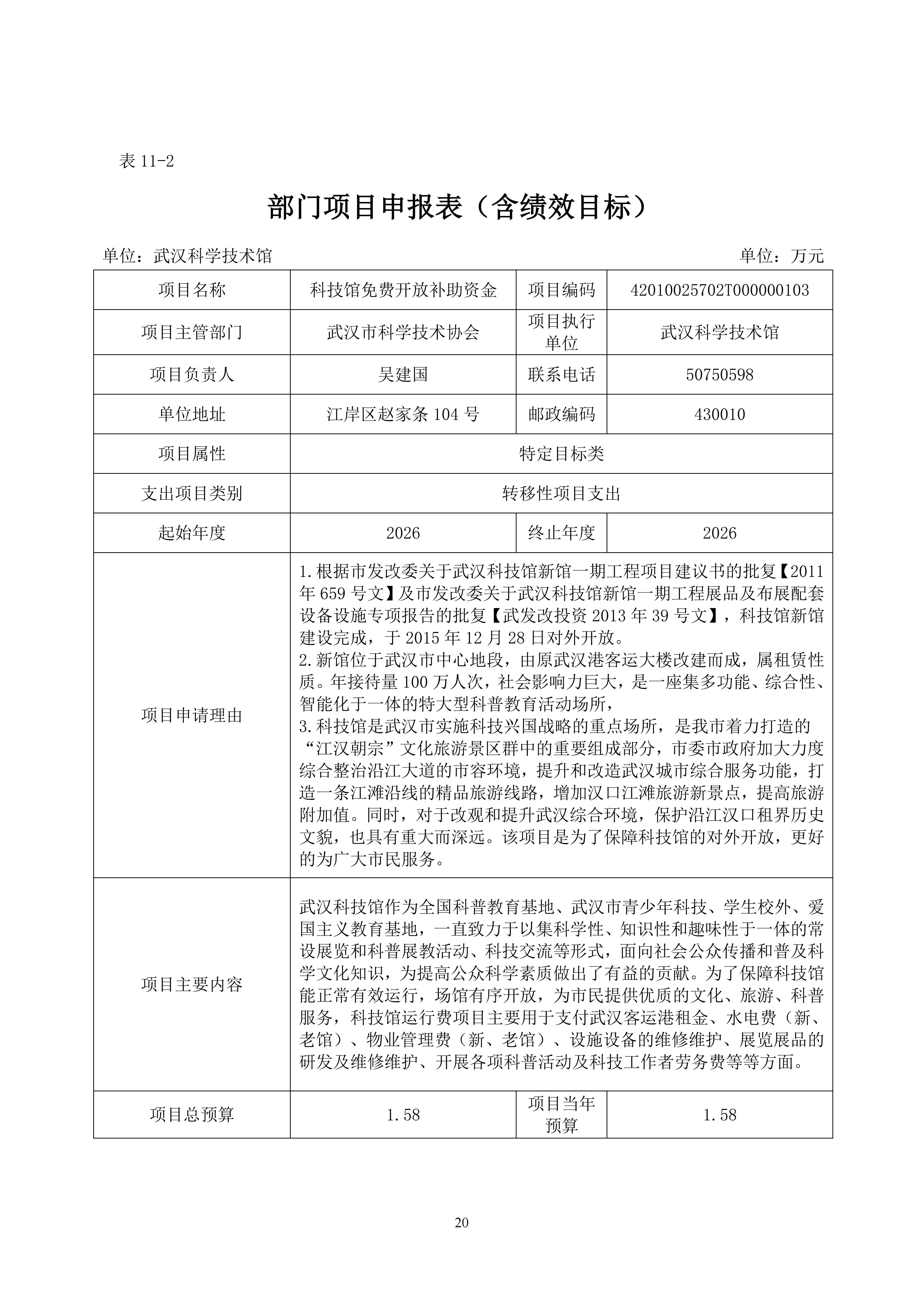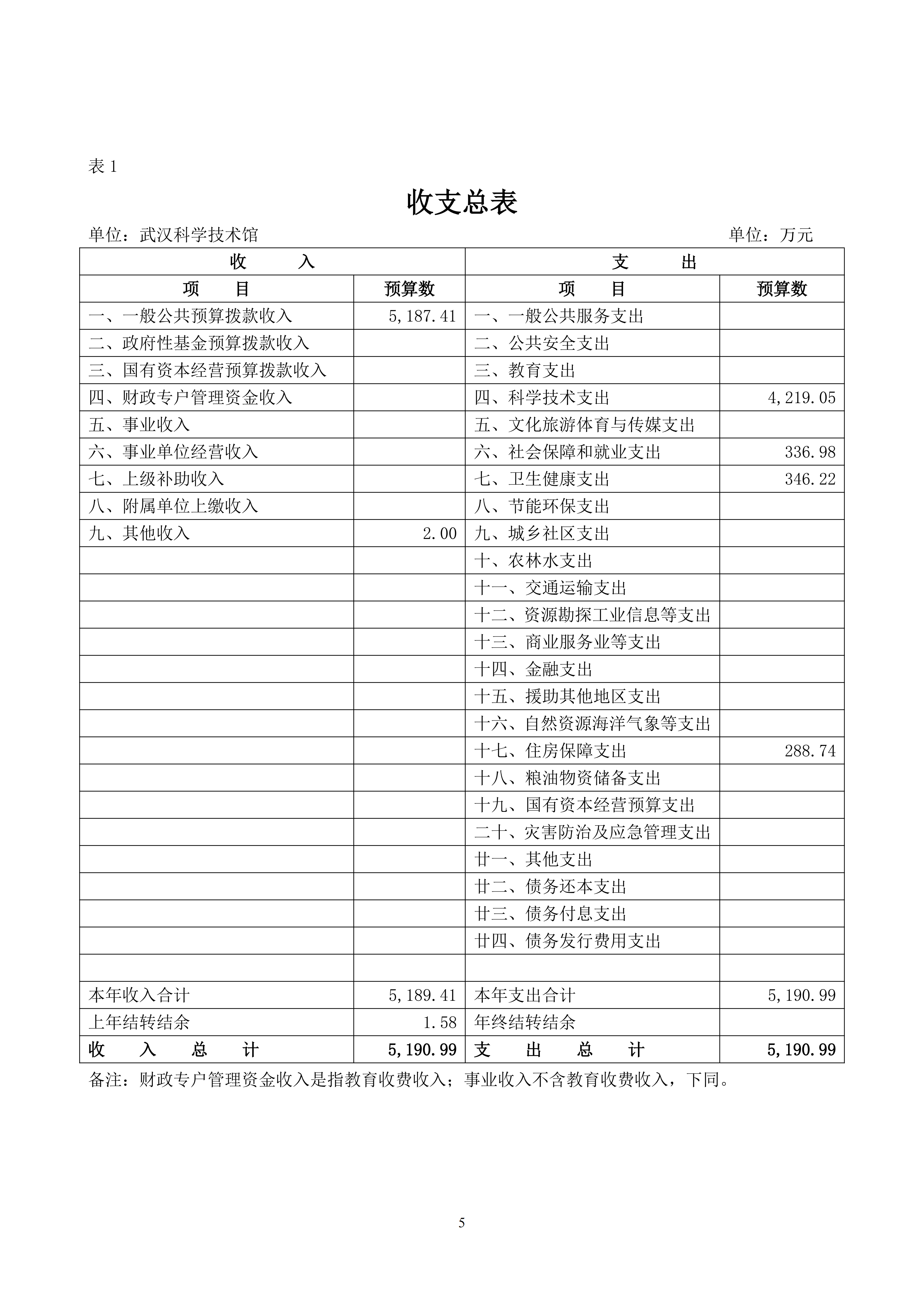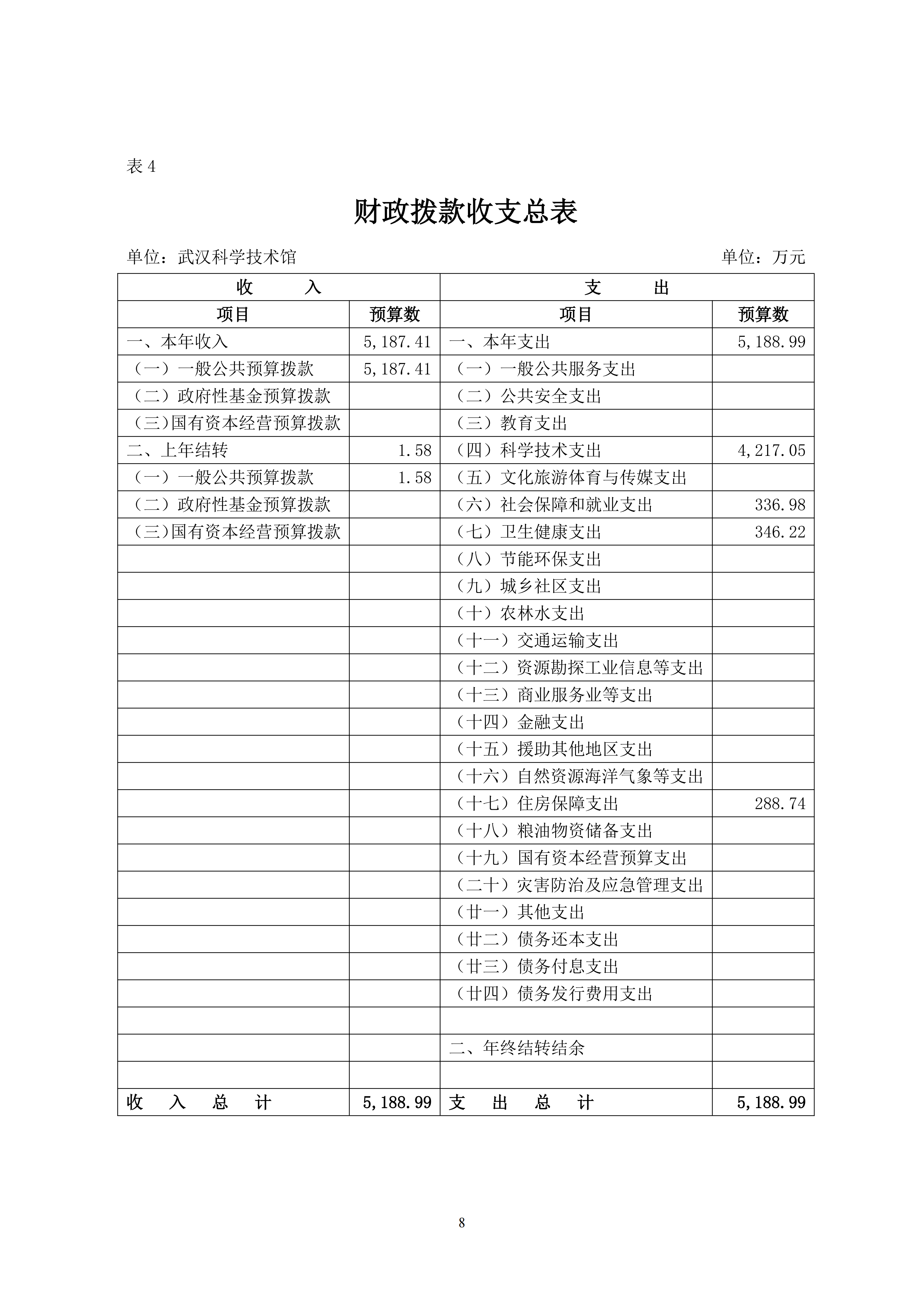 武汉科学技术馆2026年单位预算