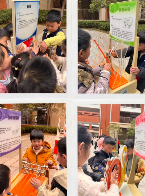 有的同学反复将小球置于不同轨道起点,观察“最速降线”中谁先到达终点;有的则被“锥体上滚”的反直觉现象吸引,一次次推动锥体,探究重心的奥秘;“看谁跑得快”展台前,大家争相转动轮盘,在竞赛中感受转动惯量的差异;“翻转的镜像”则让同学们在镜像与现实的交错中,理解光的反射原理。这些集科学性、趣味性、互动性于一体的展品,将抽象的原理转化为可触摸的体验,让同学们在动手动脑间完成了一次生动的科学探索。