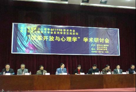 2008年11月21日至11月23日,武汉市第三届学术年会系列交流活动——“改革开放与心理学”学术研讨会在美丽的国家级山水园林城市黄石市召开。会议由湖北省暨武汉心理学会、华中师范大学科协主办,湖北师范学院承办。来自湖北省各界的心理学专家、教授,和心理学工作者共150余人参加了此次会议。