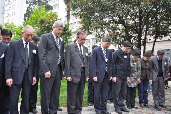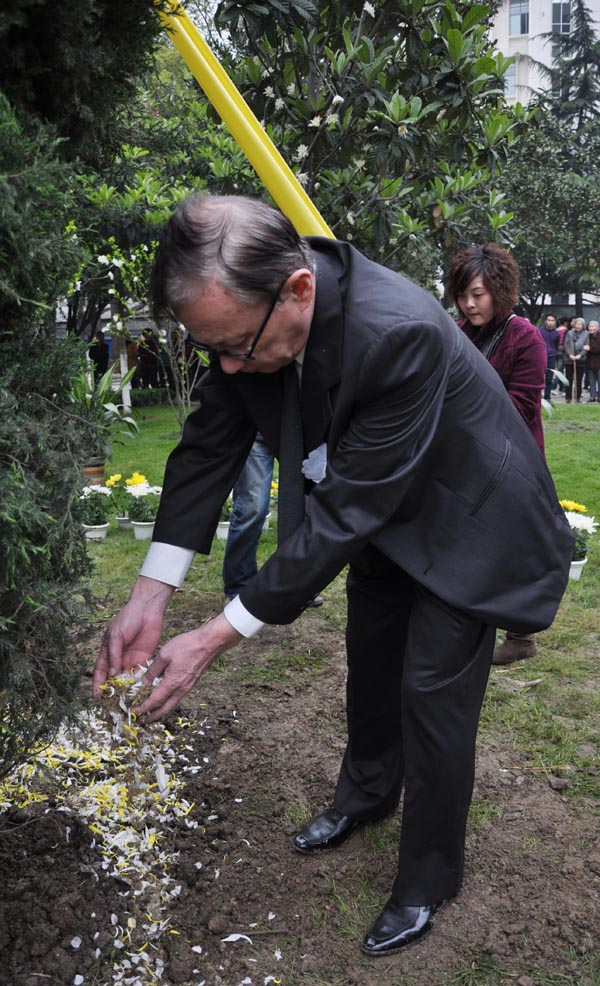 华中科技大学党政领导、同济医学院领导、同济医学院历届党政院(校)长、裘教授亲属及生前好友、学生代表参加了裘法祖教授骨灰树葬仪式。