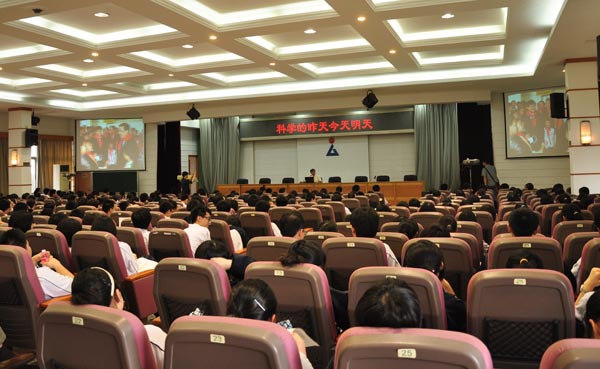 市科协网讯 6月17日,中国科技馆原馆长、北京市科协副主席、科普委员会主任王渝生教授走进武汉市六中高中部的大讲堂,带来题为《科学的昨天今天和明天》的精彩讲座,为学生上了一堂生动的科普知识课。此次科普报告会由武汉市610办公室、主办,武汉科技馆、江岸区科协和武汉市关爱协会联合承办。