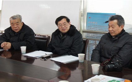 东西湖区政府高级顾问、华中农业大学李名家(中)在调研座谈会上讲话。左为华中农业大学老教授协会会长谭祜德、右为华中农业大学老教授协会副会长曾宪顺。