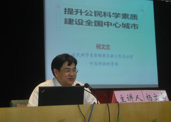 市科协网讯 5月15日,中国科协科普部部长、《全民科学素质纲要》实施工作办公室副主任杨文志应我市全民科学素质工作领导小组办公室、市科协邀请,来汉作题为《提高全民科学素质,建设国家中心城市》的科普报告。